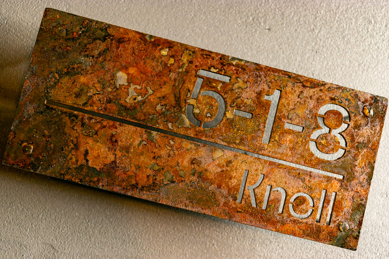 錆びの持つ魅力をもっと多くの方に感じて頂きたいと思い、表札のデザインに採用しました。独創的な玄関周りを演出したい。そんなお客様にぜひおすすめの一品です。